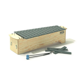 Métallophone ténor-alto Sonor Meisterklasse ; diatonique (plage C1 à C3), avec Fa# et Sib (19 mesures). Accordé en harmonique. Les métallophones ténor-alto Sonor sont uniques car ils couvrent une plage de deux octaves complètes, ce qui vous permet de laisser à deux élèves la possibilité de jouer sur le même instrument en même temps. Comprend DEUX paires de maillets en fil dur Sonor En ayant DEUX paires de maillets avec chaque instrument ténor/alto diatonique de Sonor, deux élèves peuvent utiliser le même instrument en même temps ! Quel rapport qualité-prix - deux élèves sur un seul instrument.